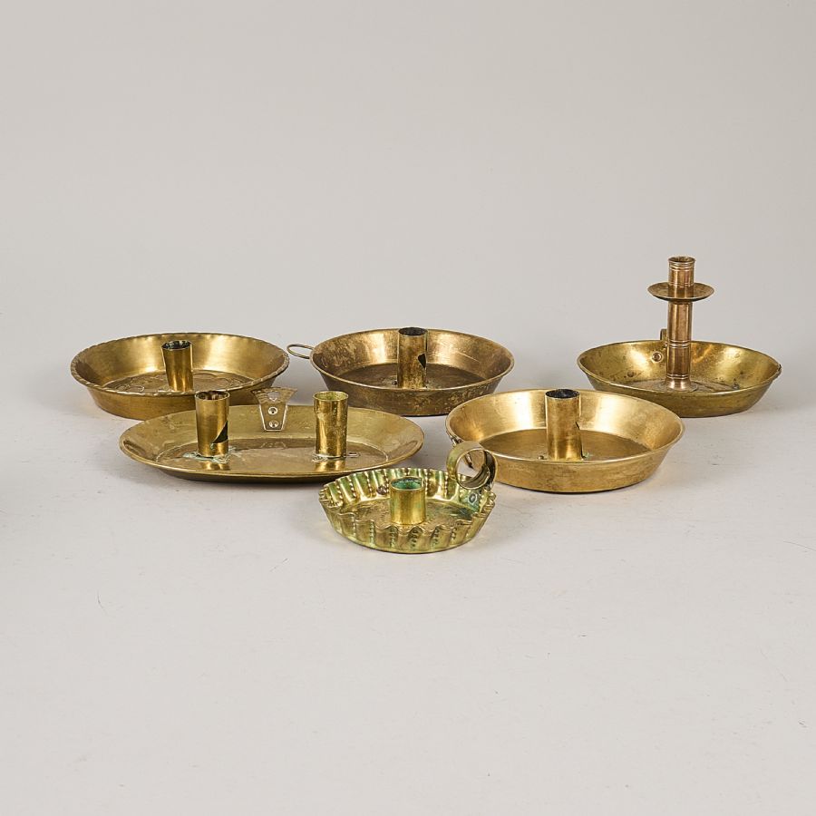 Ett par + 4 st, delvis modell äldre, mässing, punsad dekor. Diameter: 12-18 cm, höjd: 13,5 cm