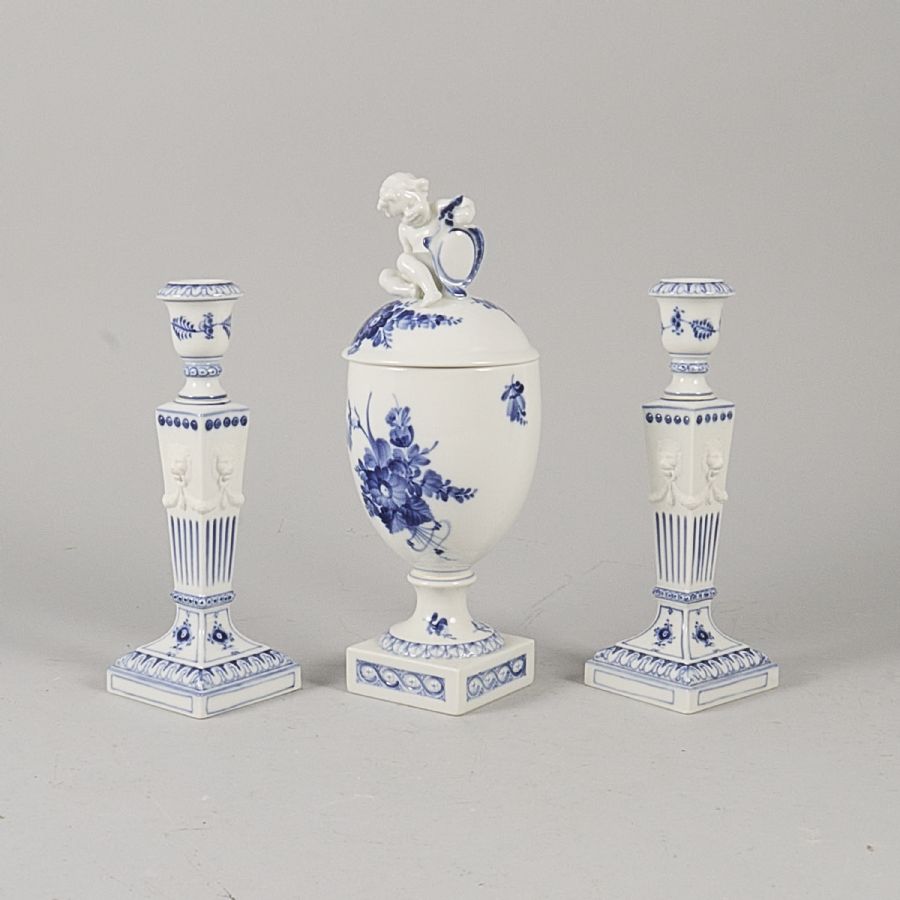 + vase and cover, 3 pcs, Royal Copenhagen, Denmark. Height: 23-29,