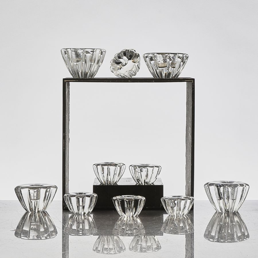 Ljusstakar, Orrefors, 10 st. Sven Palmqvist (1906-1984), Blomman, Sverige. Höjd: 4-6 cm