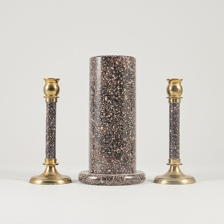 1 par + vas, porfyr och mässing. Höjd: 19-23 cm