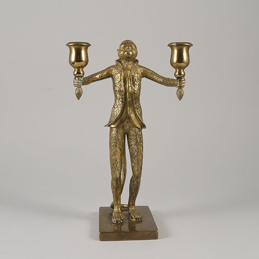 i form av apa, två ljusarmar, mässing. Höjd: 37 cm
