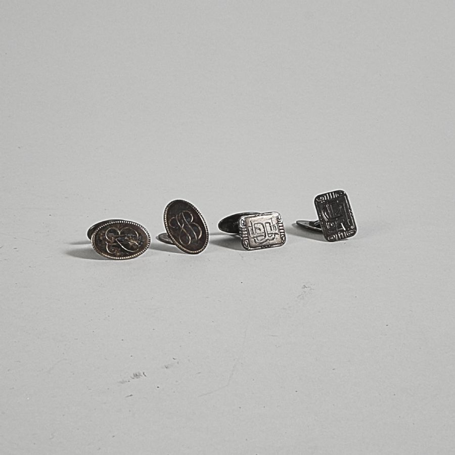 Ett par, silver, med monogram. Längd: 2 cm, vikt: 19 g ca