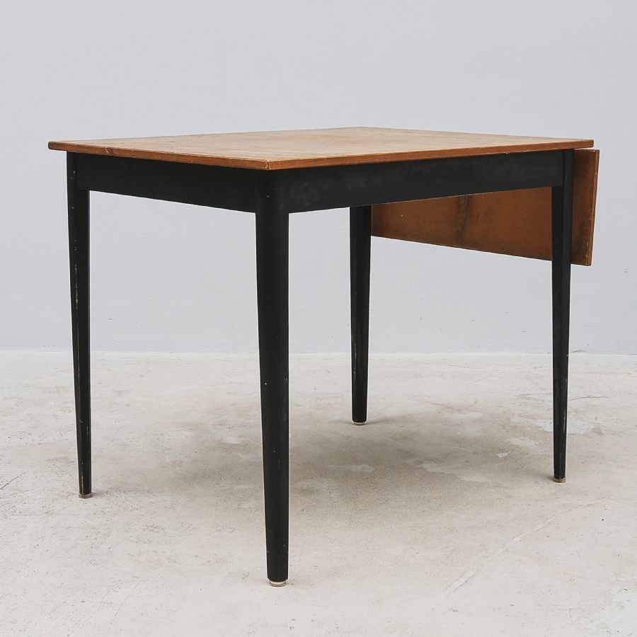 med klaff, 1950-tal, teakskiva. Bredd: 90 + 25, djup: 70 cm, höjd: 76 cm