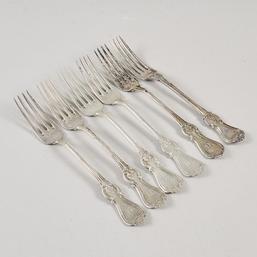 6 st, silver. Längd: 20,5 cm, vikt: 390 gr ca