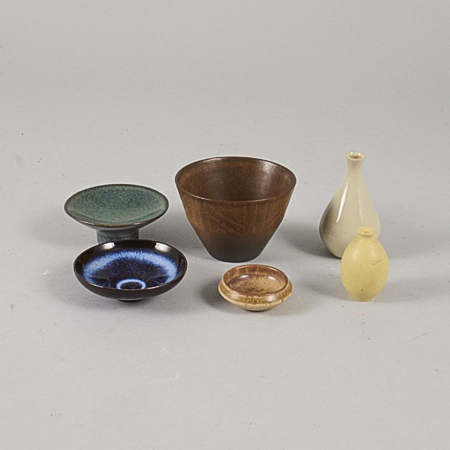 Miniatyrer, 6 st, Rörstrand, bland annat Carl-Harry Stålhane, Diameter: 4-8 cm. Höjd: 2-7 cm