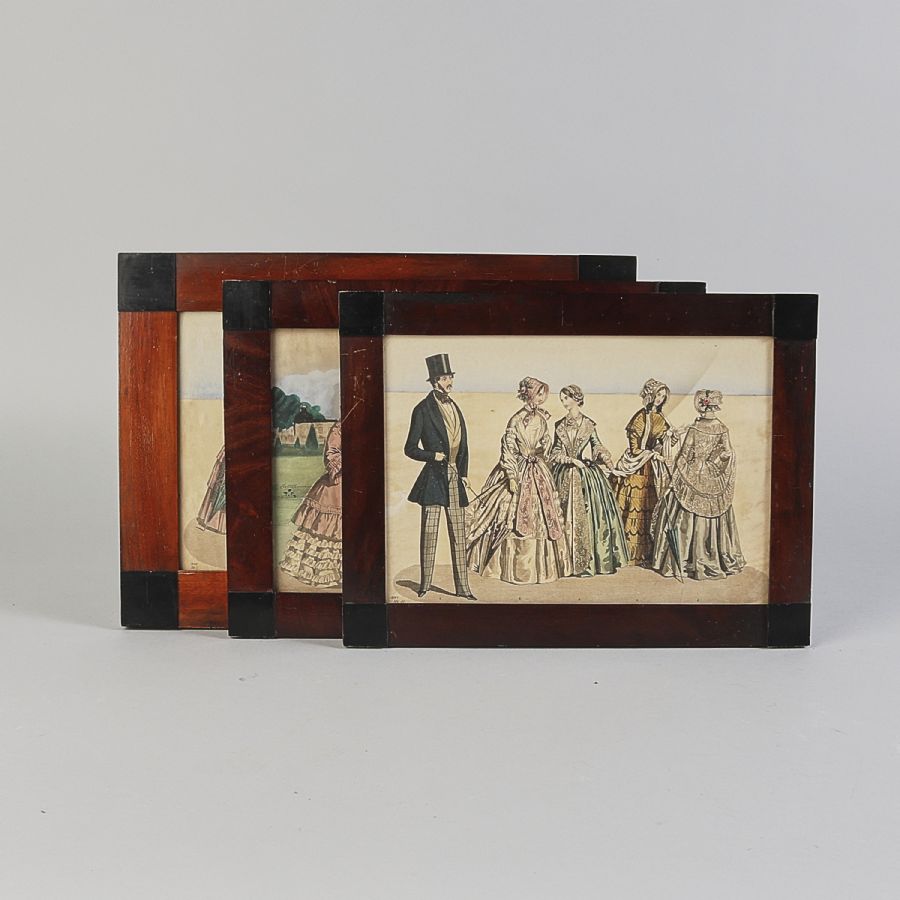 3 st, 1800-tal, kolorerade, yttermått inklusive ram: 27x36 cm