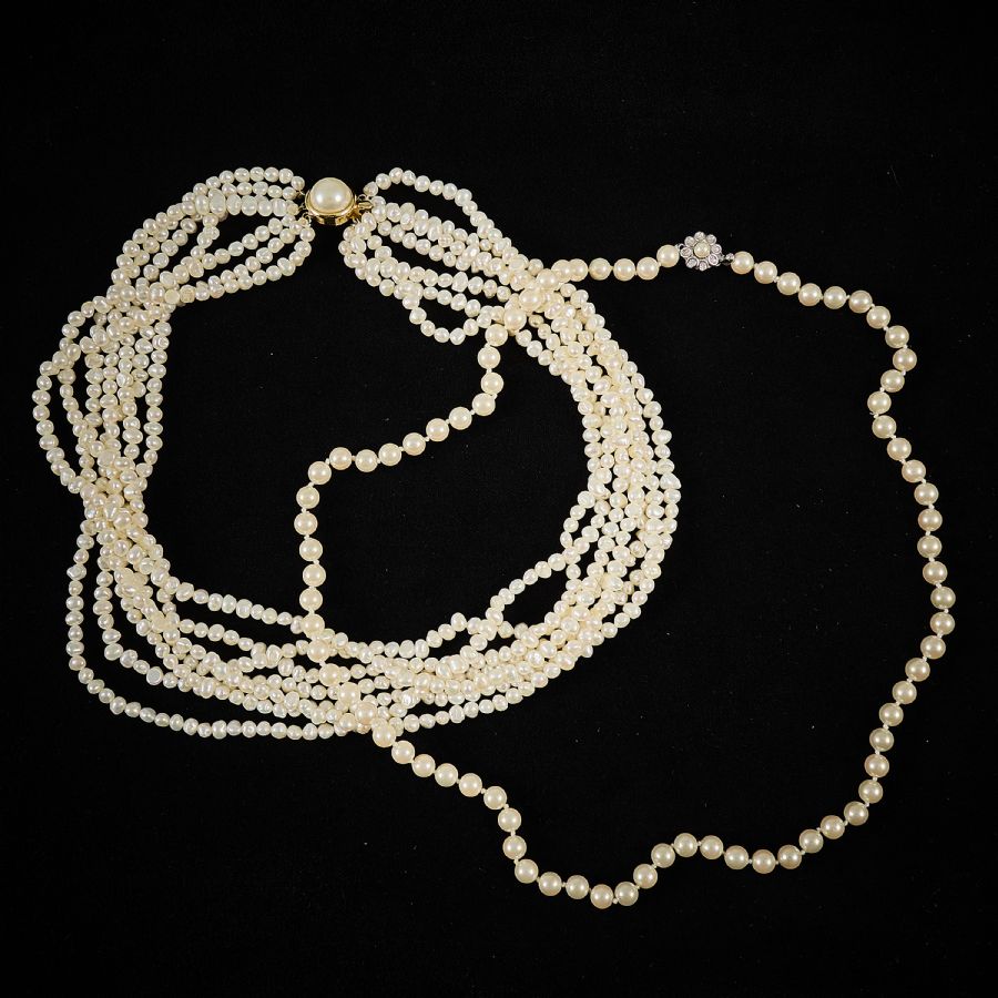 2 st, en med sötvattenpärlor. Längd: 45 + 60 cm