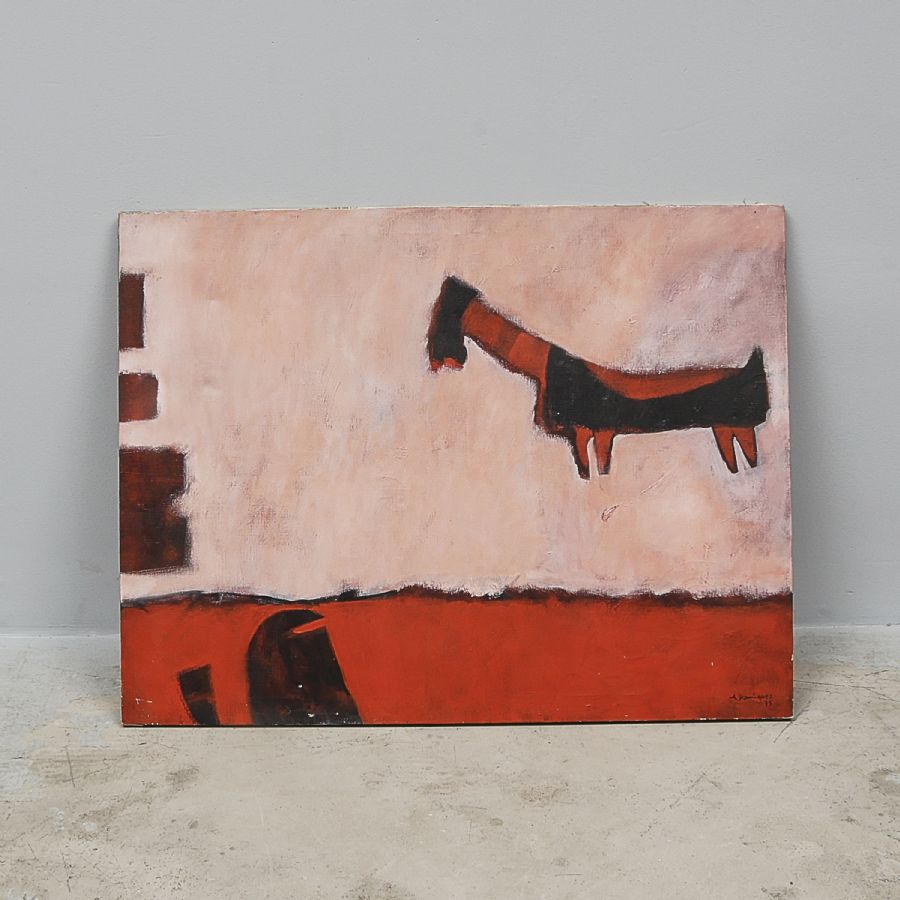A Dominguez. Signerad, daterad -75. Olja på duk, 89x116, oramad slitage, skador