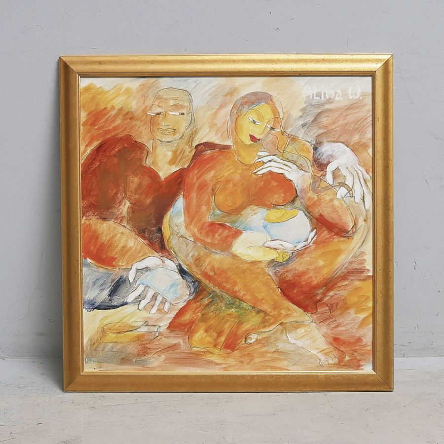 Alina Witwitzka (b. 1949), Sweden. Signed. Oil on canvas, familjen, 71x69 cm, outer dimensions including frame: 81x80,