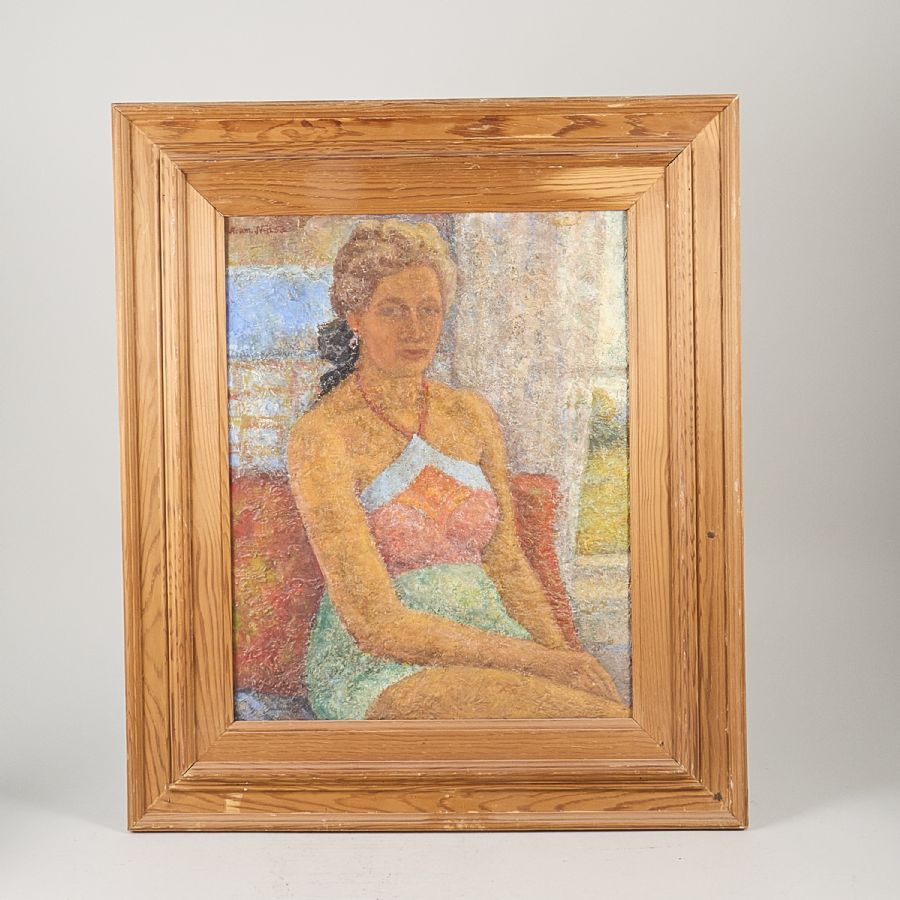 Aram Norrman (1895-1956). Sittande kvinna. Signerad, daterad -53. Olja på pannå, 48x38 cm, yttermått inklusive ram: 70x60 cm