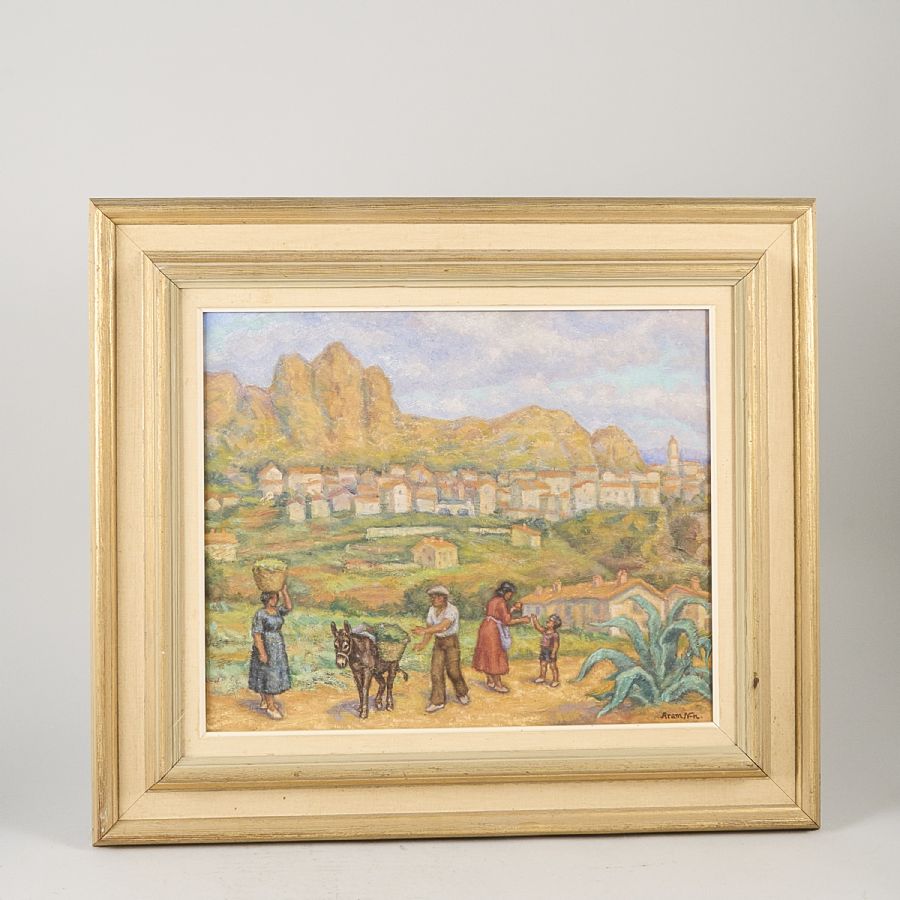 Aram Norrman (1895-1956). Sydländskt. Signerad. Olja på duk, 37x44 cm, yttermått inklusive ram: 57x65 cm