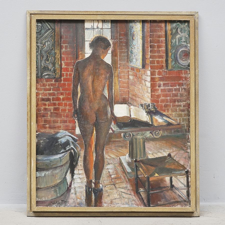 Oljemålning, Signerad, daterad 1937, Modell. Olja på duk, 72x60 cm, yttermått inklusive ram: 80x67
