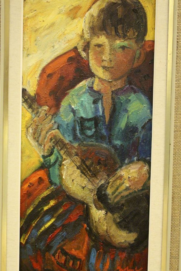 Oljemålning, Bertil Wahlberg (f. 1923), Gitarrspelande pojke, 74x34