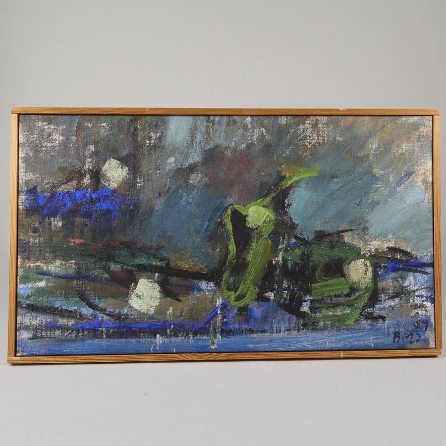 Britt-marie Jacobsson, monogramsignerad 1959. Olja på duk, yttermått inklusive ram: 30x62 cm