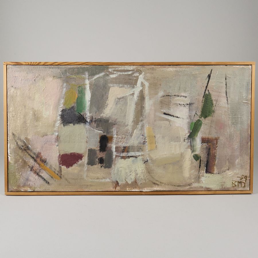 Britt-Marie Jacobsson, Monogramsignerad, -59. Olja på duk, yttermått inklusive ram: 42x78 cm