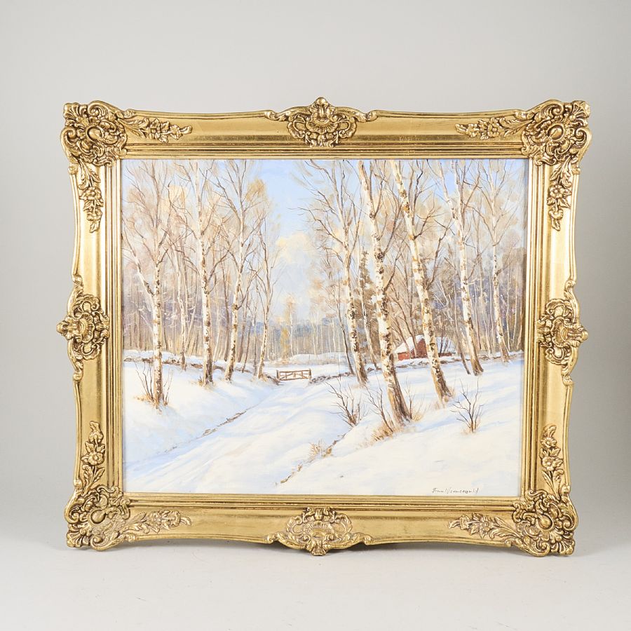 OIL PAINTING, Finn Wennerwald (1896-1969), Vinterlandskap. Olja på duk, 51x60 cm, yttermått inklusive ram: 66x75 cm. Signerad