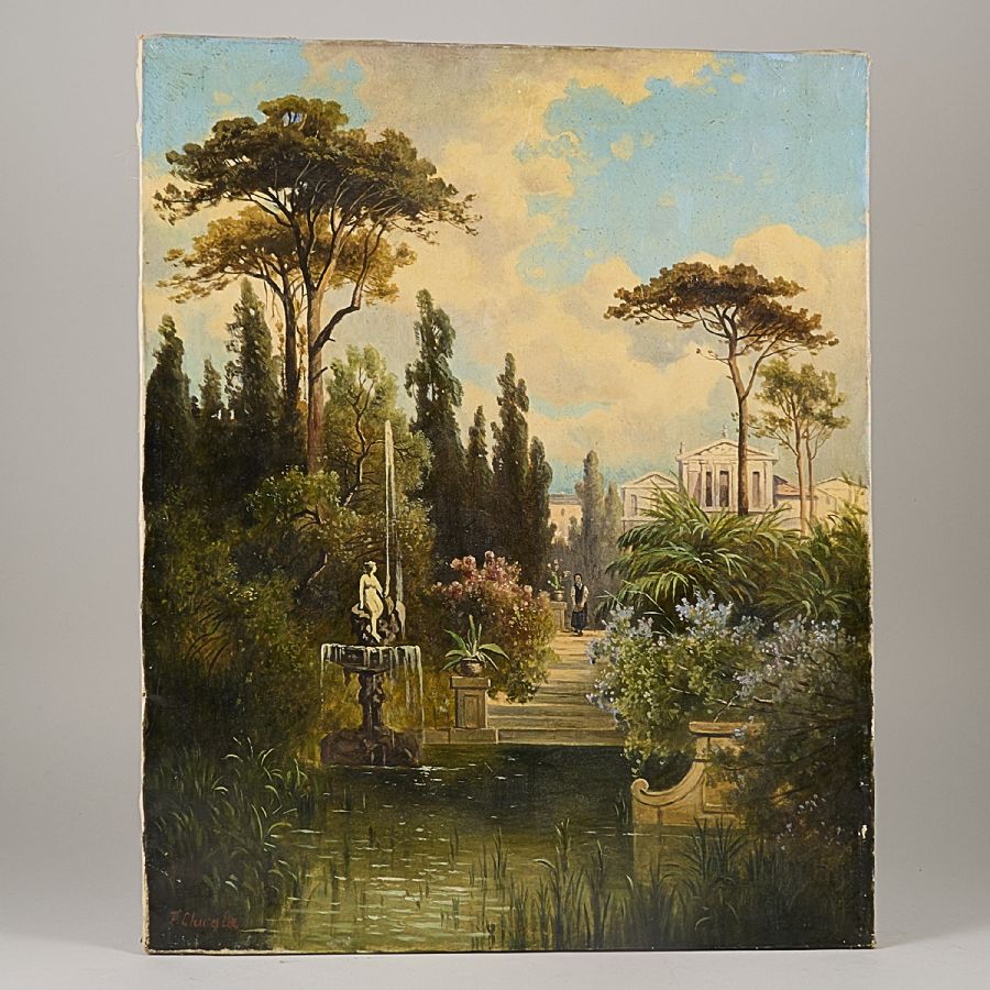 Fritz Chwala (1872-1936), garden. Signed, unframed. Oil on canvas, 68x55, damaged canvas, crazings.