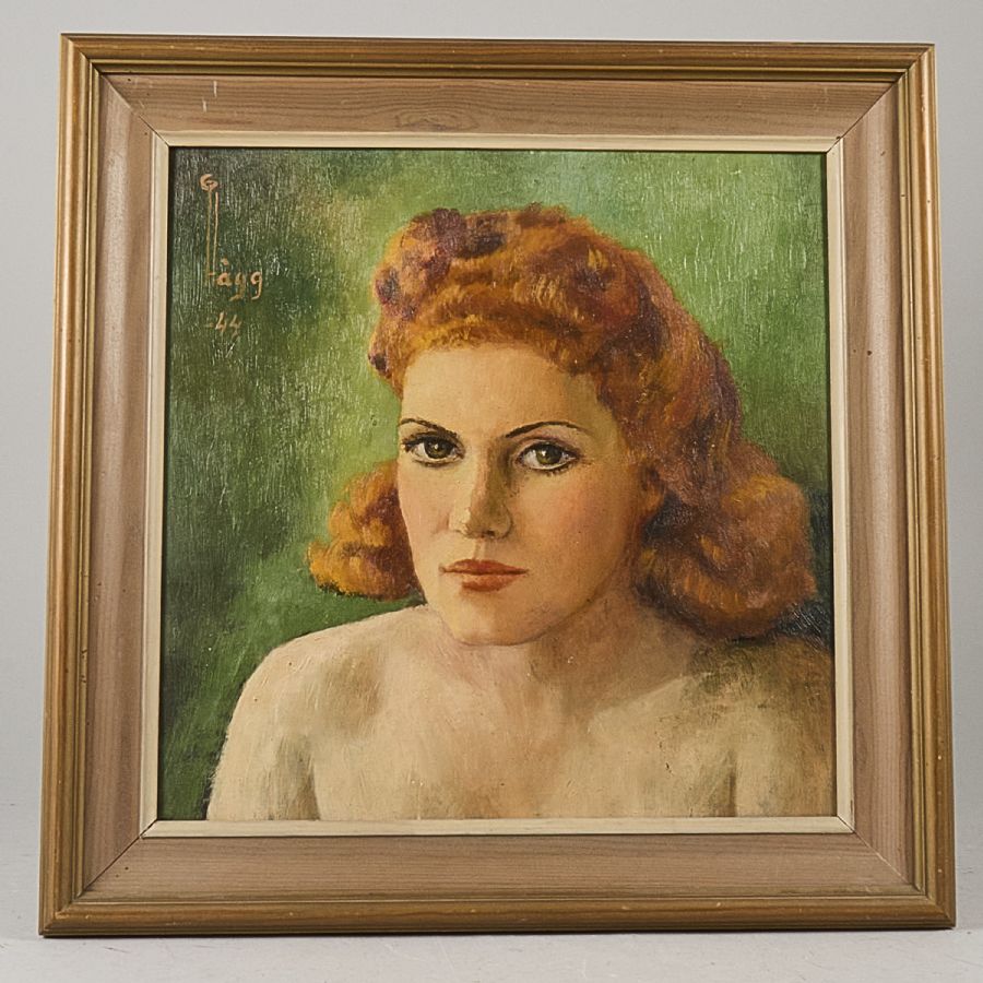 G Hägg sod -44, Porträtt. Signerad. Olja på pannå, 37x37, yttermått inklusive ram: 48x148 cm