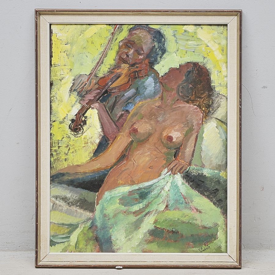 Georg Lindström, "Melodi". Signerad. Olja på pannå, 77x59 cm, yttermått inklusive ram: 87x70 cm
