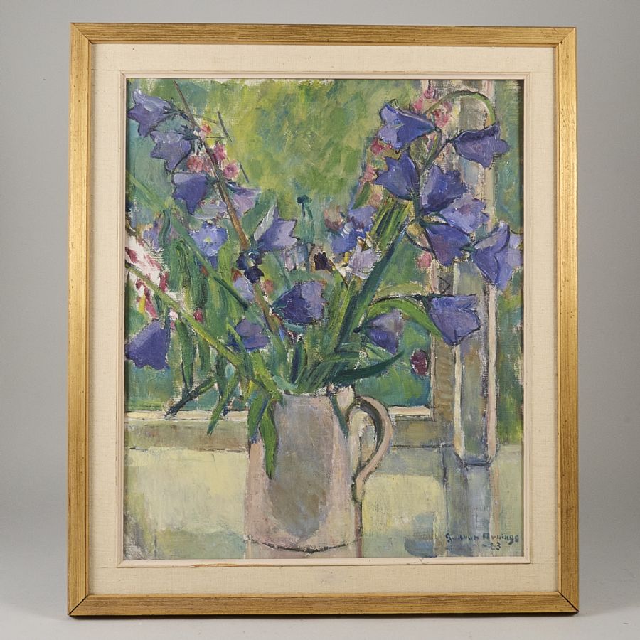Oljemålning, Signerad, daterad - 63, stilleben med blåklockor. Olja på duk, 54x45 cm, yttermått inklusive ram: 67x58 cm