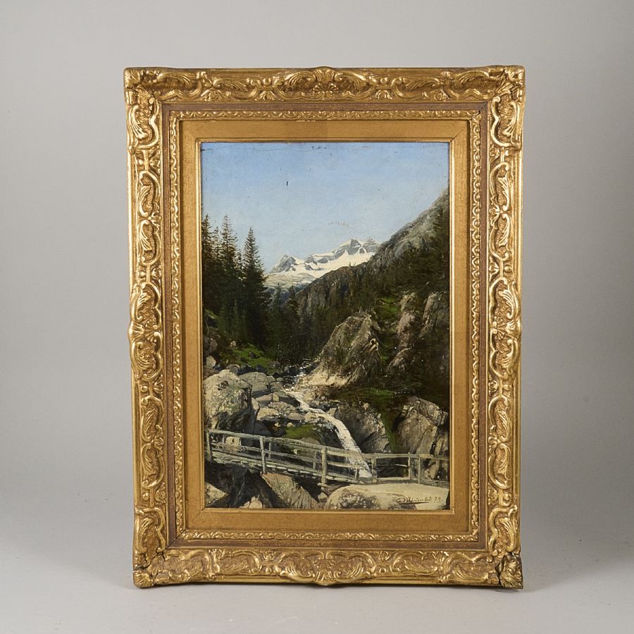 Gustaf Adelswärd. Signed, dated -79, alpine landscape. Oil on canvas, 47x31 cm, outer dimensions including frame: 64x49, wear, colour loss.