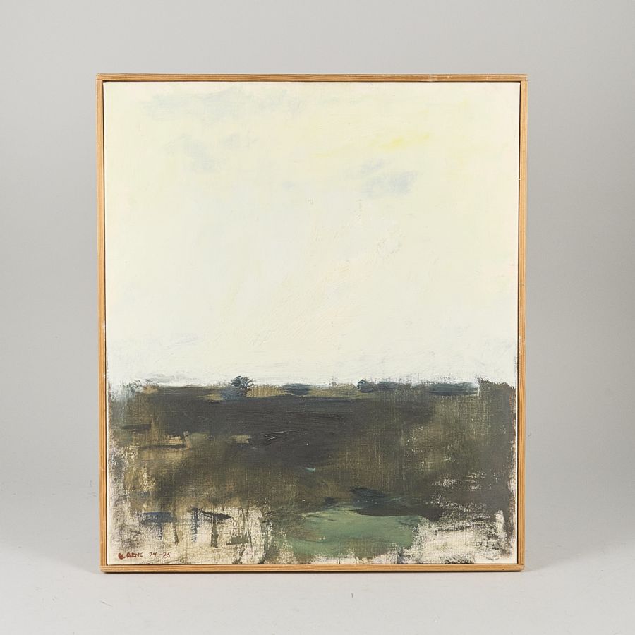 Gustav Arne (b. 1925), Sweden. Signed, dated 75, skånskt landskap. Oil on canvas, outer dimensions including frame: 40x40,