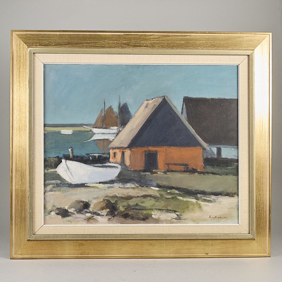 Kristansson. Signerad, båthus. Olja på duk, 50x60 cm, yttermått inklusive ram: 71x81 cm