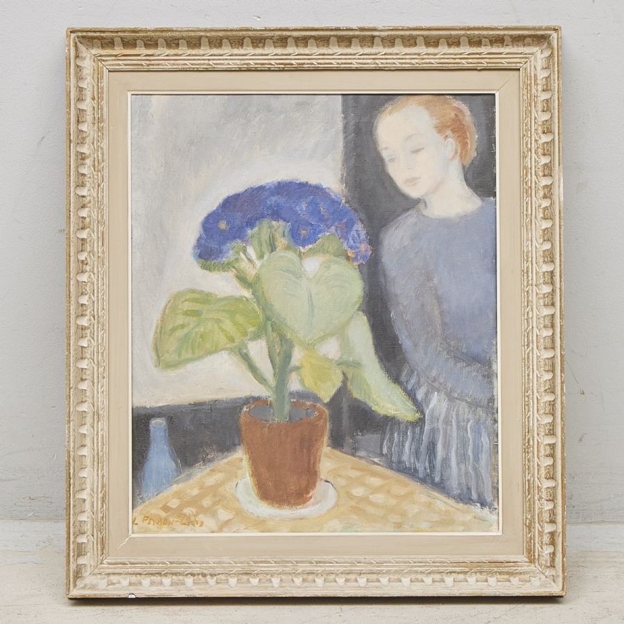 Louise Peyro-Carlberg. Signerad, daterad 43. Olja på duk, 54x45 cm, yttermått inklusive ram: 69x60 cm