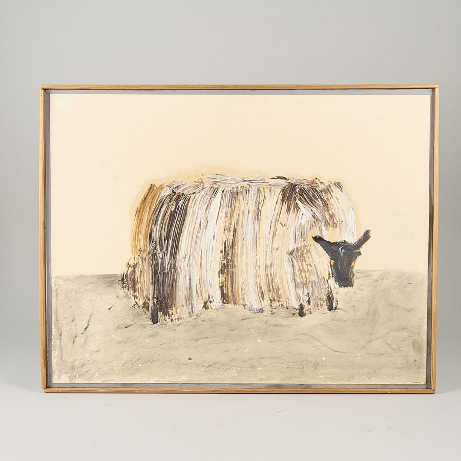 Simon Anre. Signed, dated -76. Får. Olja på papper, sheet: 50x65 cm, outer dimensions including frame: 53x68,