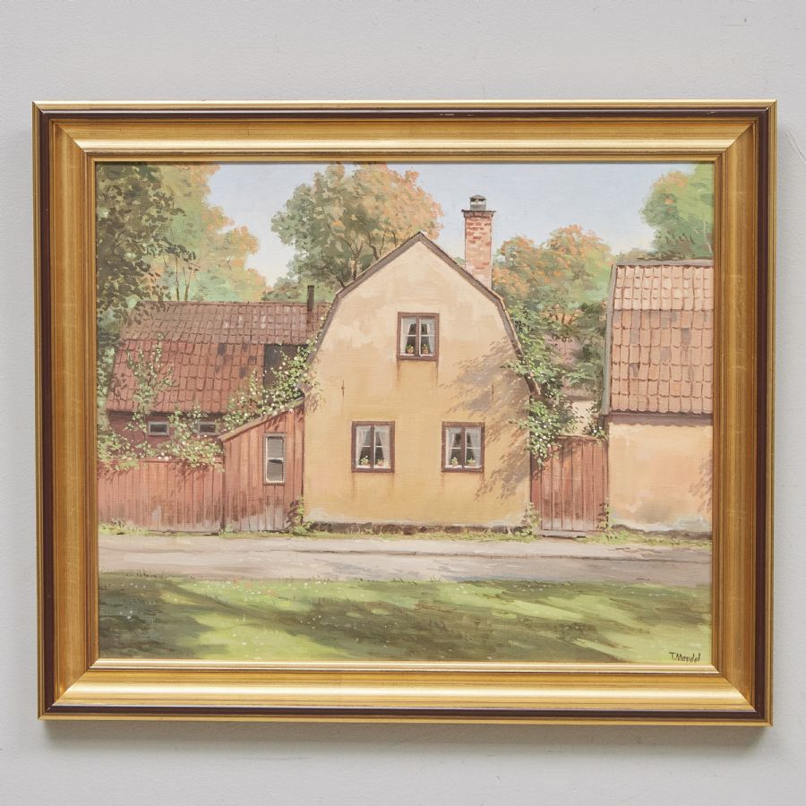 Tomas Mandel (f. 1923), Sverige, "Sommardag Gaveliusgatan". Signerad. Olja på duk, 48x58 cm, yttermått inklusive ram: 60x70 cm