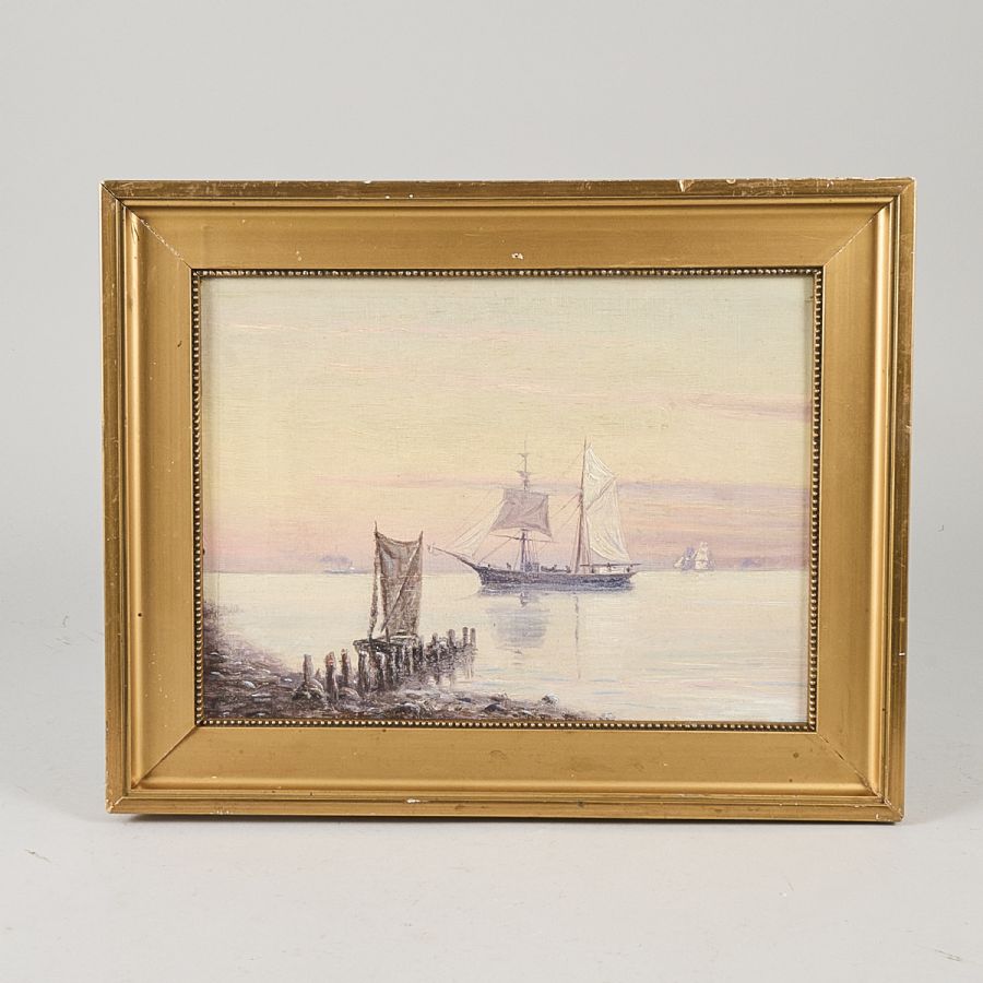 Oidentifierad konstnär. Skepp. Ej signerad. Olja på duk, 23x30 cm, yttermått inklusive ram: 32x40 cm