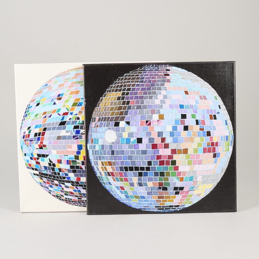 2 st, Inger Tollman. Signerad, daterad a tergo 2024. Olja på duk, 40x40, oramade