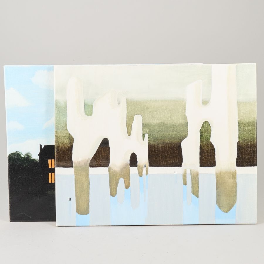2 st, Ingrid Tollman. Signerad, daterad a tergo 2025, duk, 40x50, oramade