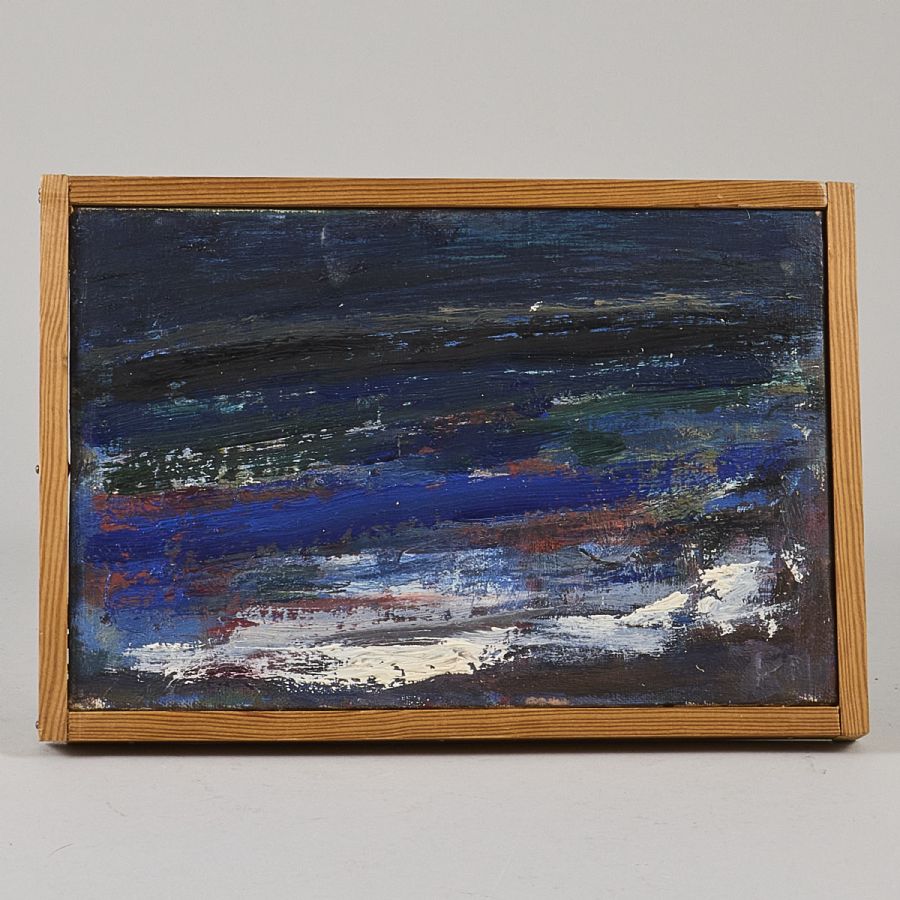 Britt-Marie Jacobsson, Monogramsignerad, "Upprört hav. Olja på duk, yttermått inklusive ram: 18x26 cm