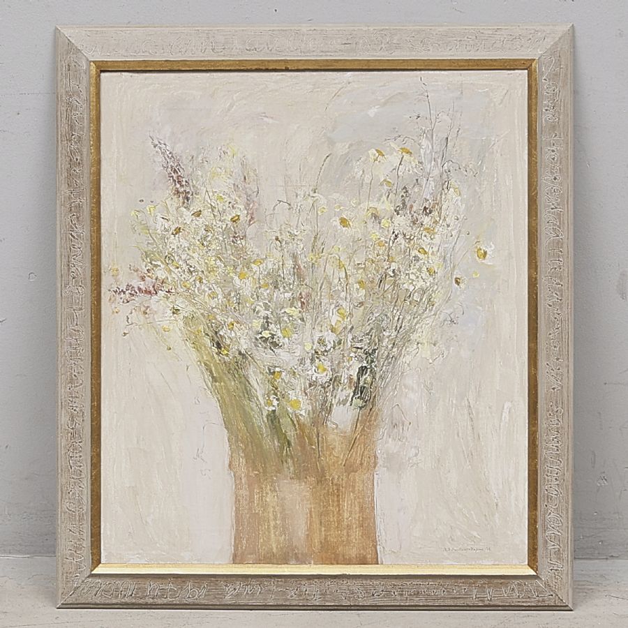 Britta Emitslöf-Dejmo. Signerad, dated -71, stilleben med blommor i vas. Olja på duk, 75x64, yttermått inklusive ram: 88x78 cm,