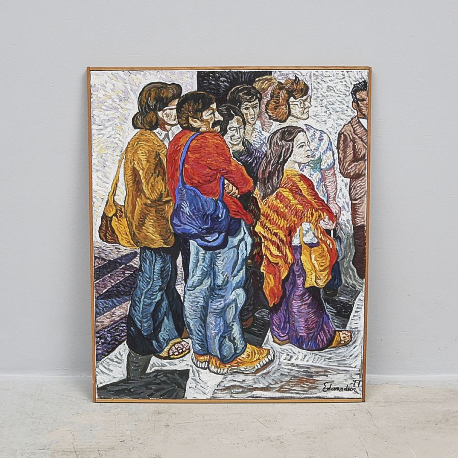 Oljemålning, Signerad, daterad -77, "Långväga turister", yttermått inklusive ram: 94x78 cm