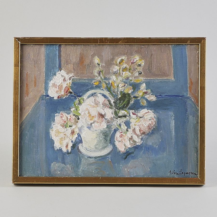 Elise Lagergren, Signerad, stilleben. Olja på duk, 26x34 cm, yttermått inklusive ram: 28x37 cm