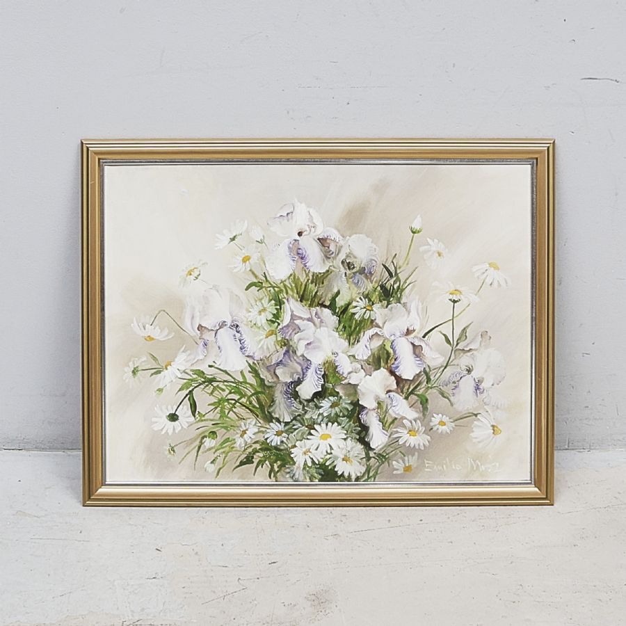 Emilia Mróz-Holnicka, blomsterstilleben. Signerad. Olja på duk, 59x80 cm, yttermått inklusive ram: 69x90 cm