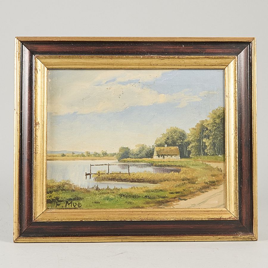 Fredrik Moe, landskap. Olja på duk, 22x27 cm, yttermått inklusive ram: 32x37 cm