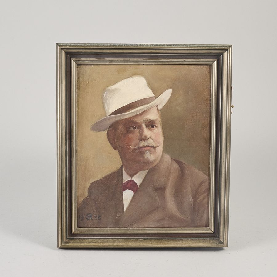 Georg Ringström, "Bokhandlaren Axel bronell", monogramsignerad, daterad 1935. Olja på pannå, 27x22 cm, yttermått inklusive ram: 33x28 cm