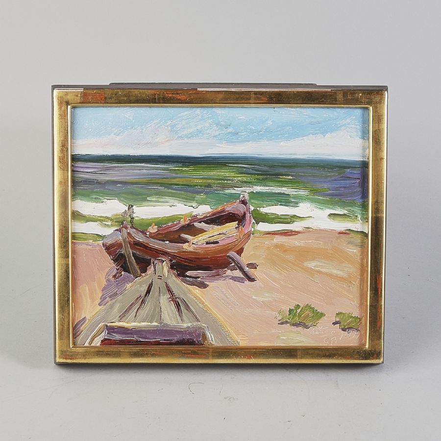 Oljemålning, Signerad, daterad -79, "Fårö". Olja på pannå, 22x26 cm, yttermått inklusive ram: 25x30