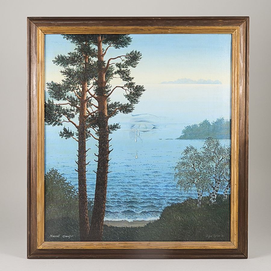 Oljemålning, "Havet sjunger". Signerad, daterad -73. Olja på duk, 58x53 cm, yttermått inklusive ram: 63x69 cm