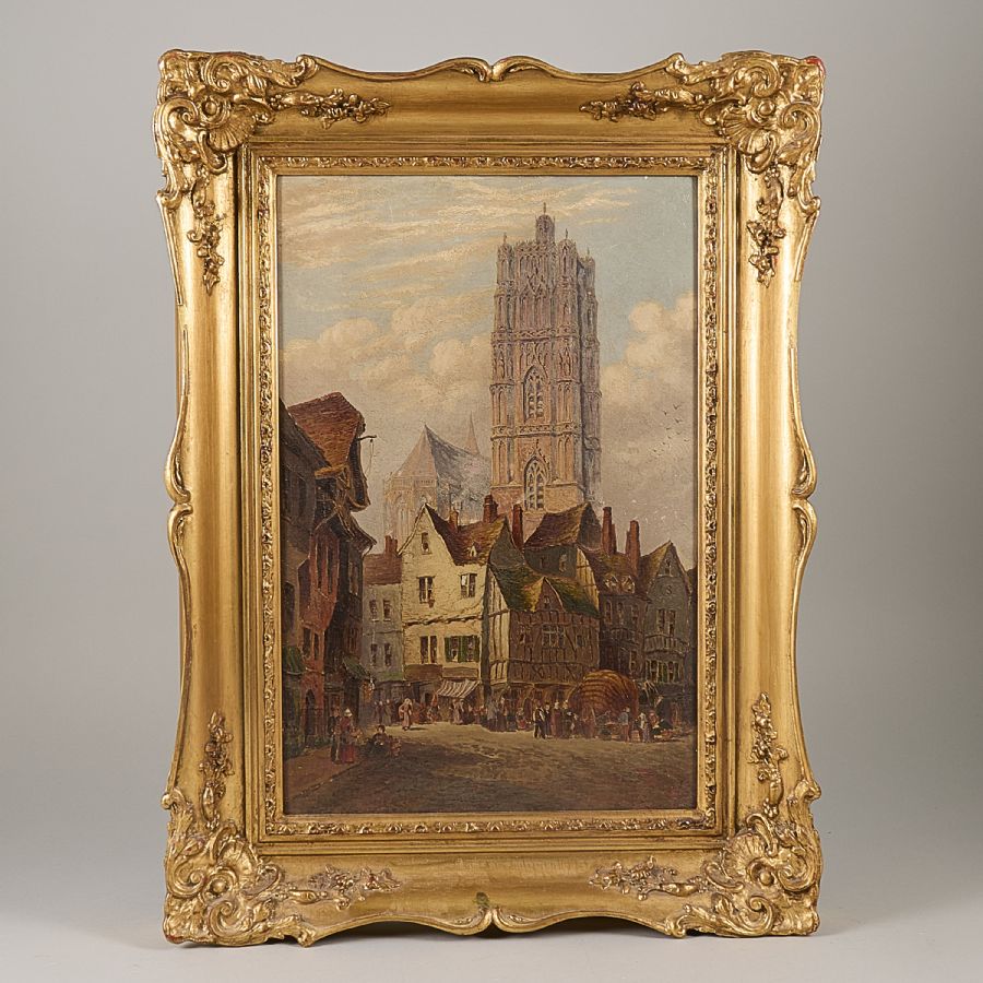James Bell Anderson, (tillskriven), 19th century, no signature, Stadsmotiv med kyrktorn. Oil on canvas, 52x33 cm, outer dimensions including frame: 70x52,