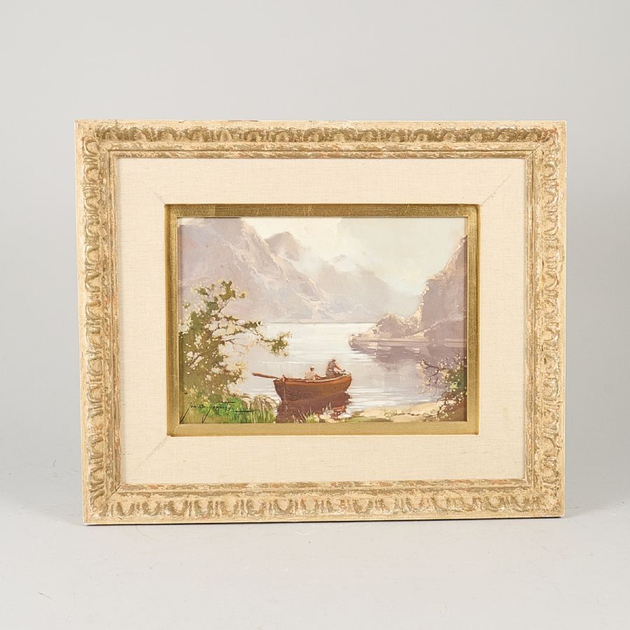 Jan B Pospisil (1898-1968), Sverige. Signerad, fjord. Olja på duk, 23x32 cm, yttermått inklusive ram: 43x52 cm