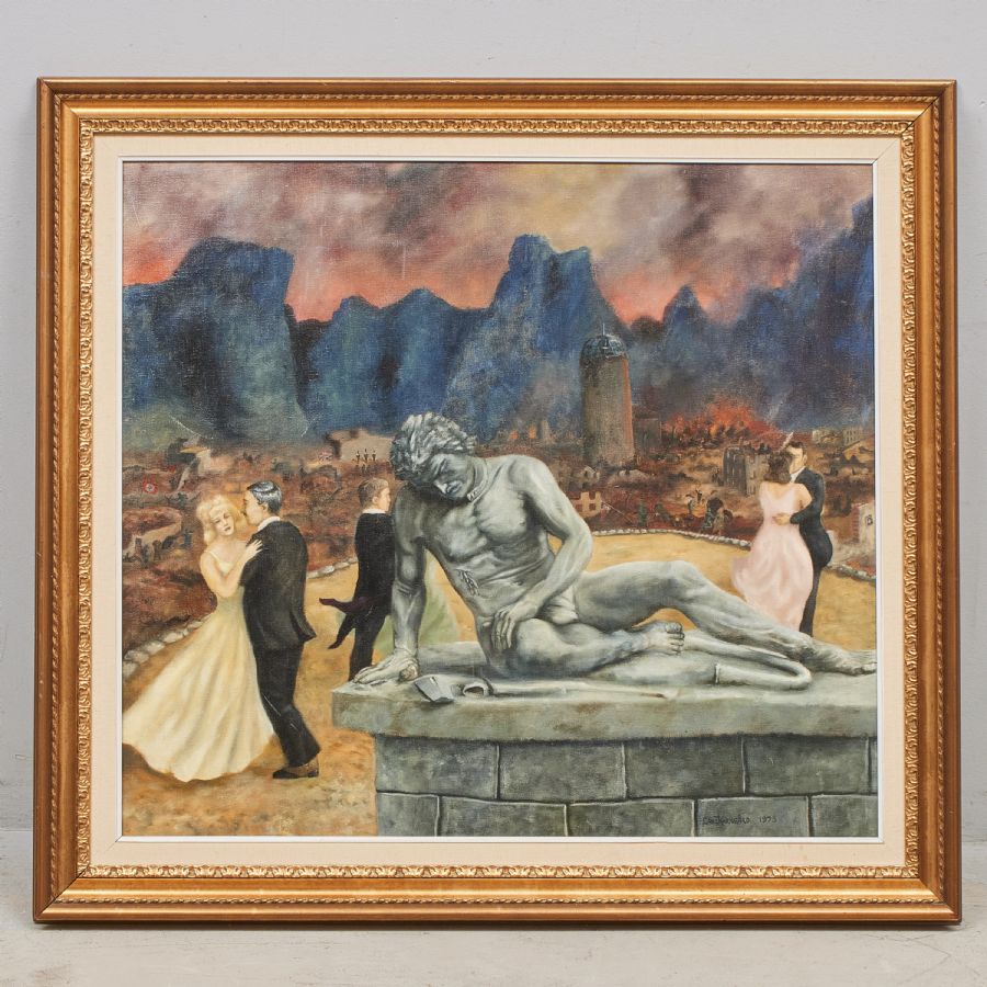 Oljemålning, Signerad, daterad - 73. Olja på duk, 89x97 cm, yttermått inklusive ram: 110x120 cm