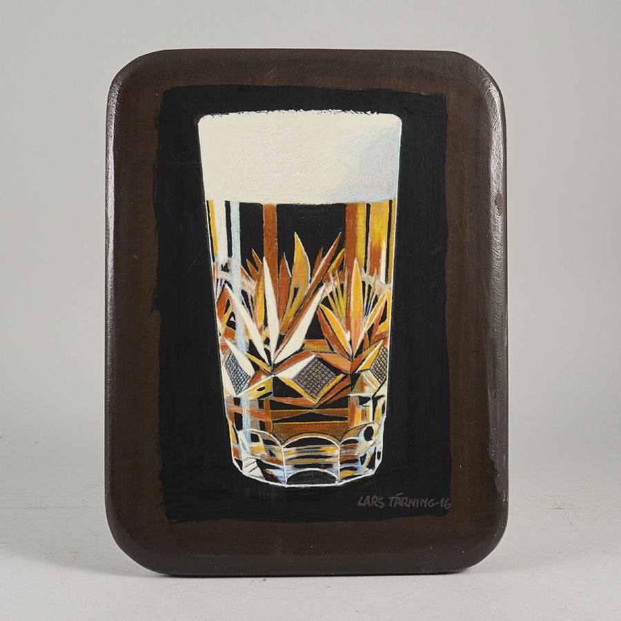Oljemålning, Ölglas. Signerad, daterad -16. Olja på pannå, oramad, 40x31 cm