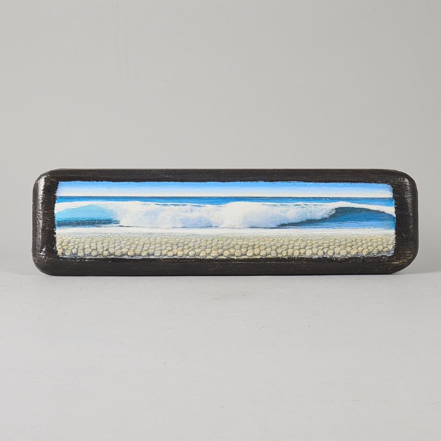 OIL PAINTING, Signerad, daterad -14, oramad, kust. Olja på pannå, 15x52 cm