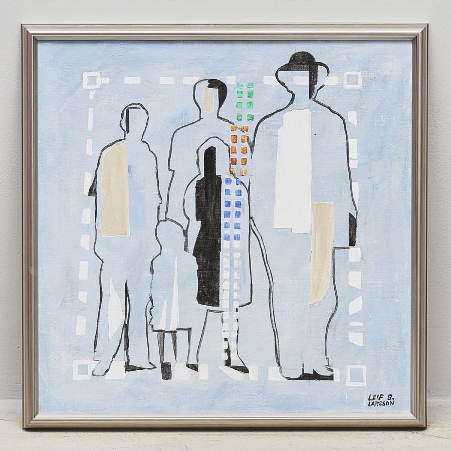 Leif B Larsson, Signerad, "Familjen". Olja på duk, 64x64 cm, yttermått inklusive ram: 70x70 cm