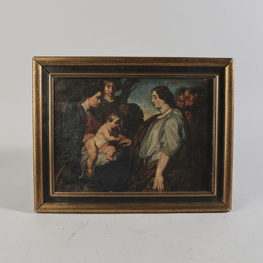 Oidentifierad konstnär. 1800-tal, Religiöst motiv, ejs signerad. Olja på duk, 23x32 cm, yttermått inklusive ram: 31x40 cm
