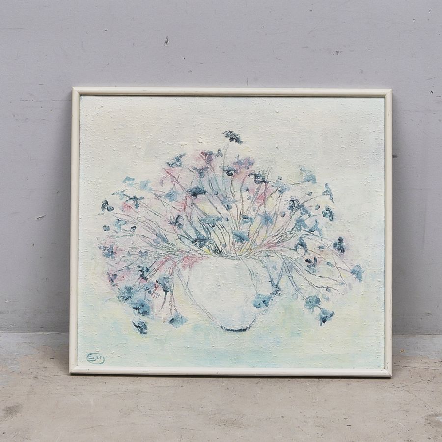 unidentified artist. Still life with flowers. Monogramsignerad BM. Oil on canvas, 89x79 cm, outer dimensions including frame: 93x83 cm,